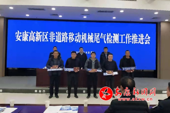 會議就《非道路移動機械知識》進行了宣講培訓,宣讀印發了《安康高新區生態環境局關于開展非道路移動機械尾氣檢測的通知》文件。現場為企業、建筑工地內非道路移動機械使用單位個人代表頒發了號牌和登記證書。