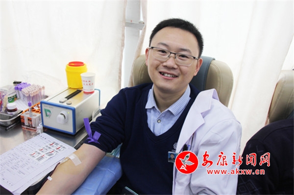 市人民醫院紀委書記唐勇在忙完了手上的工作后,立刻趕到獻血車上捋袖捐血。他說:“無償獻血是醫務工作者必須要帶頭做的事,人民醫院一直都是無償獻血的排頭兵,每年都在春節臨近前組織全院職工獻血,此次活動還有各黨支部的書記以及退伍軍人參與,大家獻血熱情都很高漲,雖然天氣很寒冷,但我們的心都是熱的!”