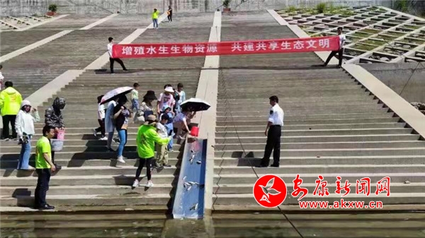 5月9日,由安康市漁業生產工作站牽頭在瀛湖海事碼頭開展第二屆增殖放流環保公益活動,本次活動共投放濾食性鳙魚、鰱魚等魚苗5萬尾。希望通過此次活動,在增殖漢江水體魚類種群的同時,提高水生態保護意識,在全市營造保護水生生物、養護水域生態的濃厚氛圍,切實促進人與自然和諧共生發展。(通訊員 劉曉婷)