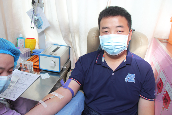 袁飛是當天第一個獻血的黨員,他說為了組織好這次活動,各支部都提前做了精心的籌劃,此次獻血活動能和黨史學習教育結合起來,特別有意義,以前自己雖然沒有獻過血,但一直有獻血的想法,昨天一接到通知他立刻就報了名,今天坐在這里,雖然第一次體會到采血針頭扎進血管這種陌生的感覺,但心里是坦然和欣喜的,一想到這袋血也許能幫助到一個病患,同時對自己來說也是一種保障,這讓他更加堅定了今后繼續獻血的想法。