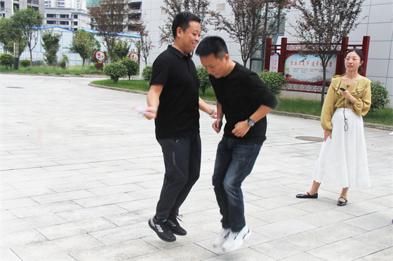 當(dāng)然比賽中還有許多“小插曲”,有的選手鞋帶松了,有的選手繩子扭了,有的選手眼鏡掉了,有的選手被大繩打到疼得哇哇叫,但正是因?yàn)橛辛诉@些小插曲,才讓參與者的笑聲更響,讓這場(chǎng)比賽變得更生動(dòng)有趣,也讓“快樂工作、幸福生活”這句話有了最真實(shí)的體現(xiàn)。