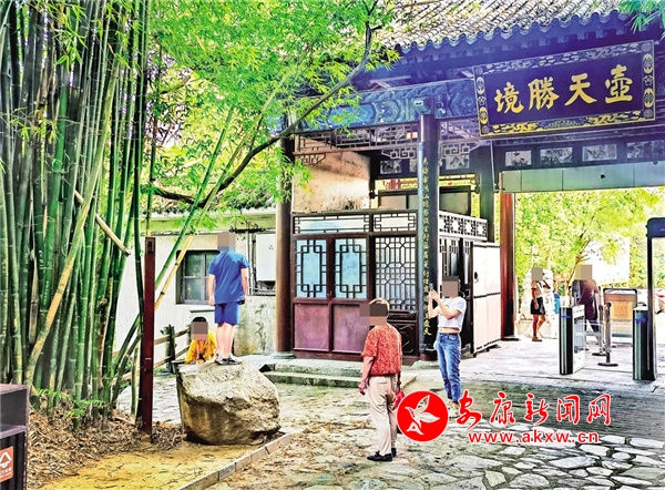 暑假期間,8月2日,在香溪洞景區內,一小孩站在景觀石上照相,旁邊的工作人員勸阻無效。