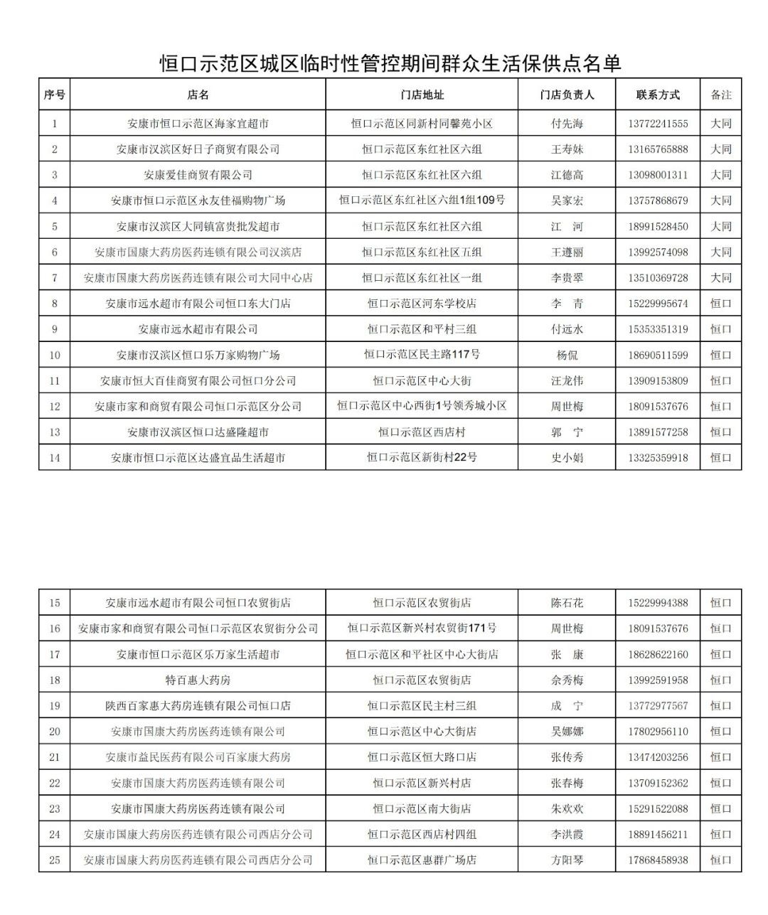 附件:恒口示范區臨時性管控期間群眾生活保供點名單?