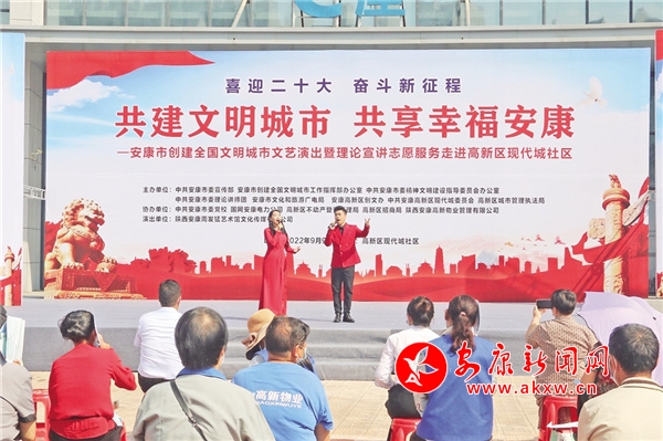 9月9日,一場以“共建文明城市,共享幸福安康”為主題的文藝演出和理論宣講活動在高新現代城社區舉行。整場活動,除了有群眾喜聞樂見的文藝節目,還設置有創建知識問答互動和創文知識專題宣講。現場,志愿者們還熱情地向群眾發放印有創文內容的宣傳冊、涼扇、垃圾袋等,大家紛紛贊揚:“形式生動活潑,宣傳入腦入心!”