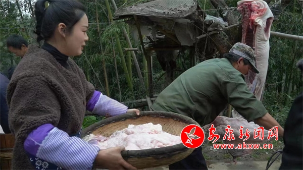就這樣,抖音號“菲兒姑娘”出發啦。她平時負責策劃及出鏡。在2023年2月9日的采訪中,楊菲對華商報記者說:“我們的視頻一般是從食材的選取開始拍,比如炒臘腸,每個產品都是經過精挑細選,也都是選取當地農戶自己養殖的豬,整個制作過程也都會拍進視頻里,就會不斷有粉絲朋友詢問購買臘腸、臘肉?!?022年11月份,僅用半個月時間該賬號幫村民賣完了5000余斤豬肉,還有不少客戶已經在預定明年的臘肉,這讓附近的農戶信心倍增。