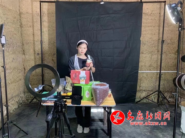 走進店里,沒有濃重的商業氣息,有的是難得的寧靜,直播設備、燈光、擺放的土特產,就如靜淌的河水,漂浮的白云,院壩邊的那棵棗樹,讓我想起了魯迅先生的《棗樹》,“在我的后園,可以看見墻外有兩株樹,一株是棗樹,還有一株也是棗樹。”