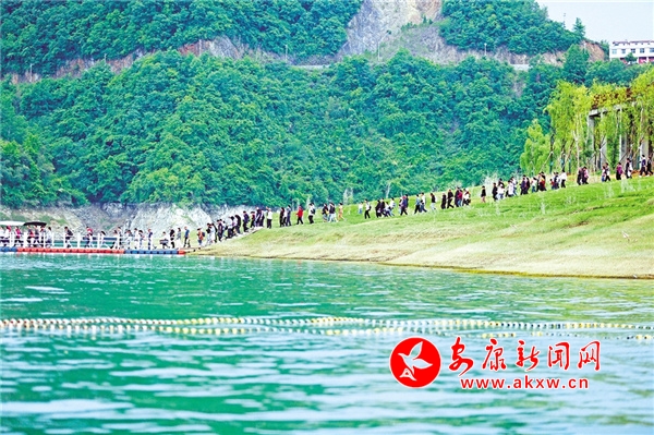 游客抵達(dá)瀛湖景區(qū),在工作人員的疏導(dǎo)下,有序登船,穿好救生衣后,向著碧波漣漪、白云萬(wàn)里進(jìn)發(fā),這樣游湖,就是一幅絕美的畫卷。