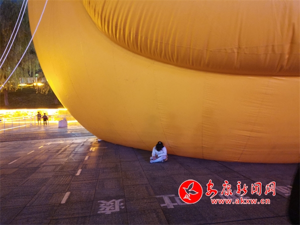 10月6日,漢江"大黃鴨"打卡點,出現了翻越圍欄,進入充氣氣球禁止區域的不文明旅游行為。(實習生 康研 王千龍)