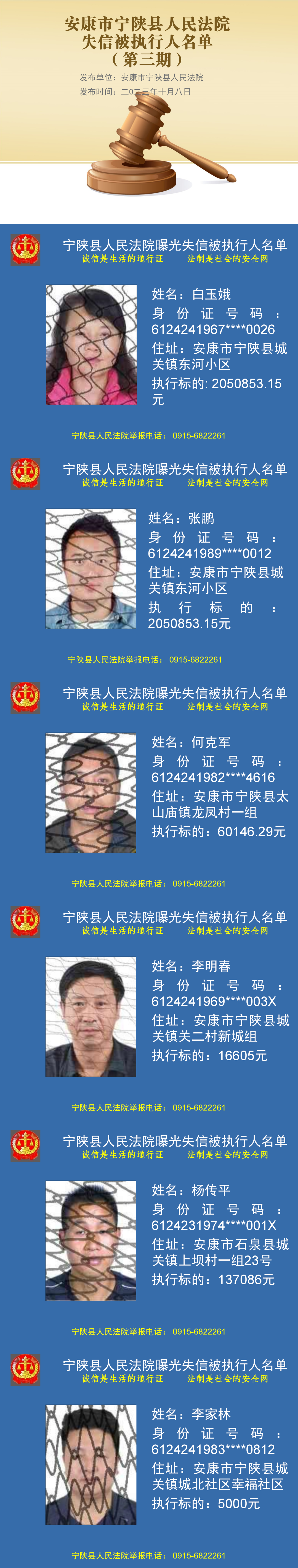 曝光失信 | 寧陜法院2023年第三期失信被執行人名單公布