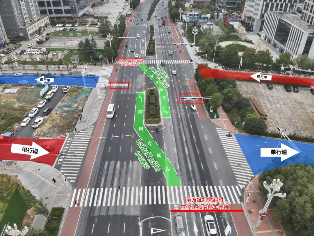 二、安康大道東西向左側車道延伸標線(上圖綠色區域)為左轉專用道,并非左轉等待區,在左轉綠燈亮起時方可通行。