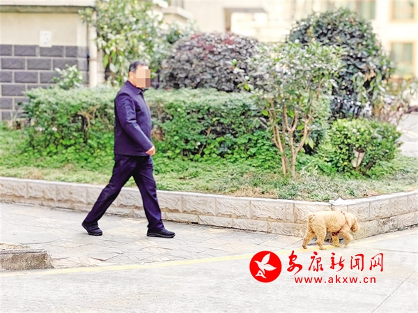 12月2日,有市民在某小區內不牽繩遛狗。鄭時根 攝?