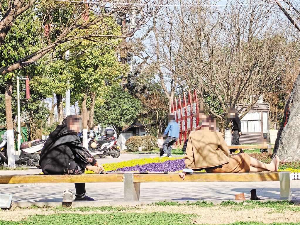 有個別游客日前在安康博物館廣場未按文明旅游有關規定,脫鞋橫臥在公共座位上,影響公共文明。 鄭時根 攝?