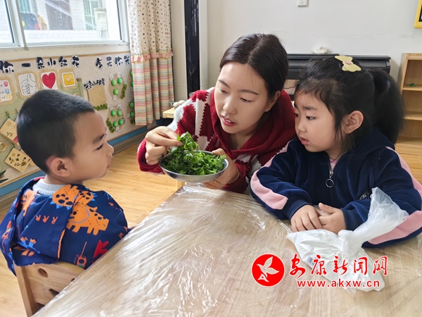 幼兒園組織家長和幼兒走進自然,一起踏青采蒿,孩子們再將原材料帶到學校。活動中,老師通過直觀形象的圖片、生動有趣的視頻向孩子們講解清明節的來歷、風俗習慣以及蒿子粑粑的制作方法,接著,孩子們在老師的引導下,清洗蒿子,真真切切地體驗了“做蒿子粑粑”的全過程。