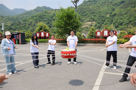 隨后,一眾獻血者乘著大巴迎著初夏的清風來到了平利縣蔣家坪村。參觀結(jié)束后,獻血者們在專業(yè)教練的帶領(lǐng)下開展了素質(zhì)拓展訓練,大家分別組隊,繪制了精美的團隊旗幟,喊出了響亮的團隊口號……指壓板接力、擊鼓顛球、獨木橋、一圈到底、一個個趣味游戲讓場上隊員激情滿滿、歡樂無比,大家在一輪又一輪的比拼中體會到了對抗的激烈,也感受到了團結(jié)的情誼,更展現(xiàn)了成分血固定獻血者們“勇往直前、持之以恒、永不服輸”的堅韌精神,正如大家多年來對安康無償獻血公益事業(yè)的堅守與支持。