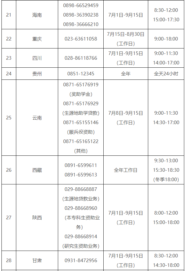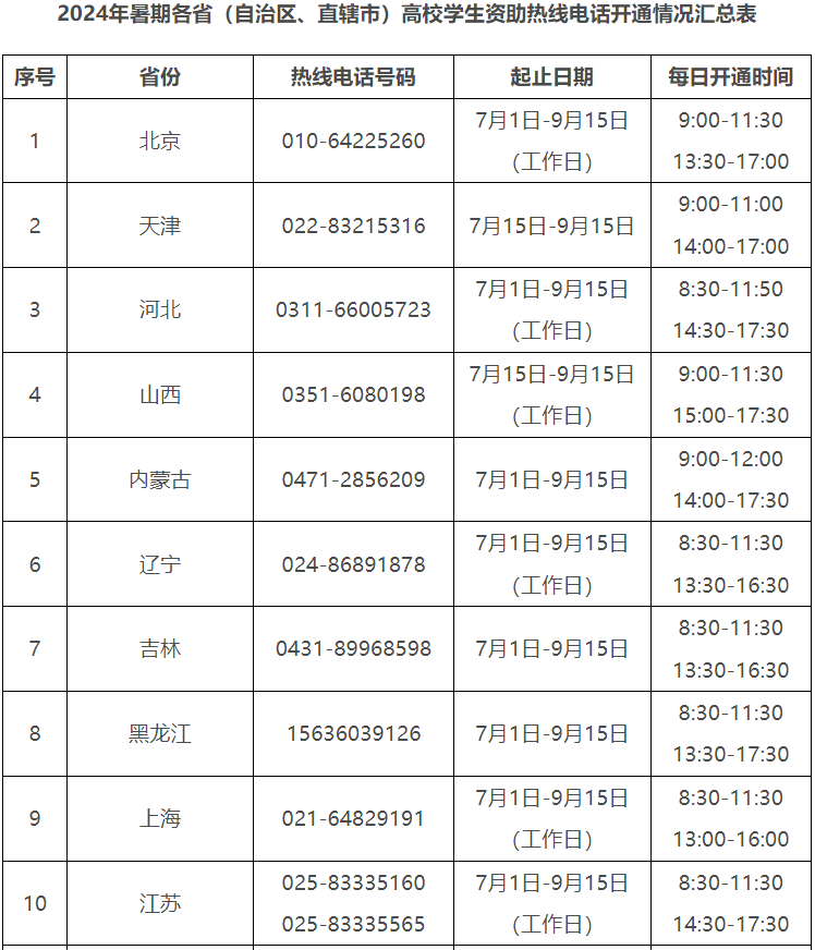 2024年暑期教育部高校學生資助熱線電話7月1日開通