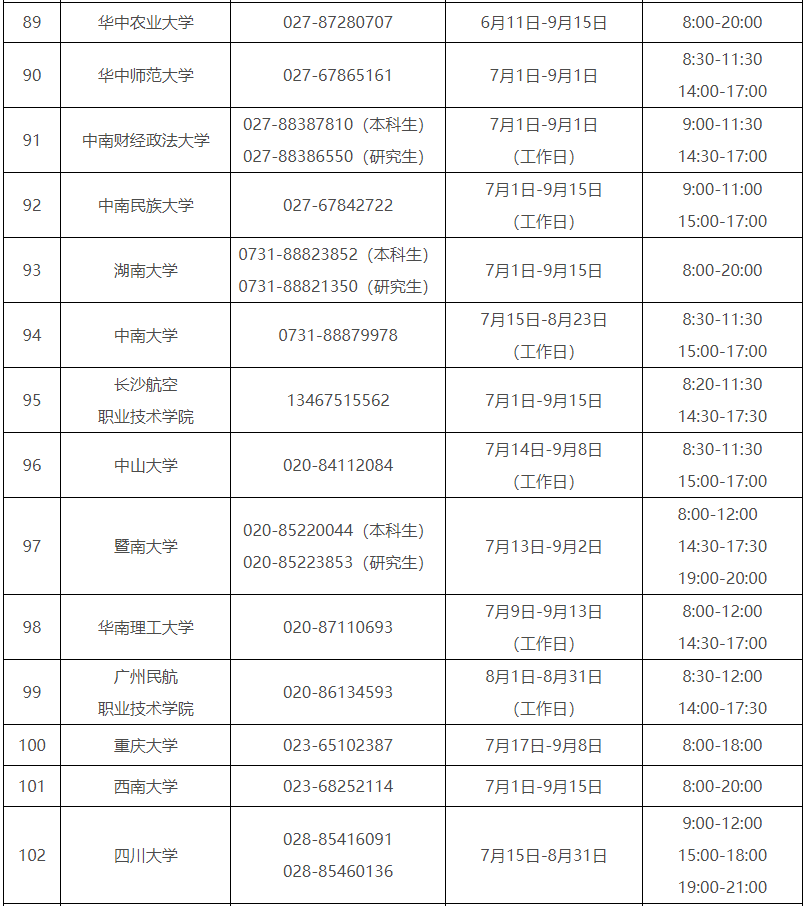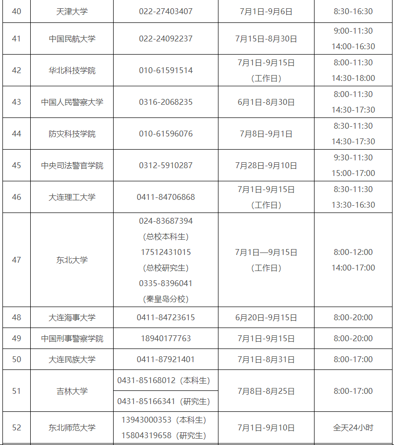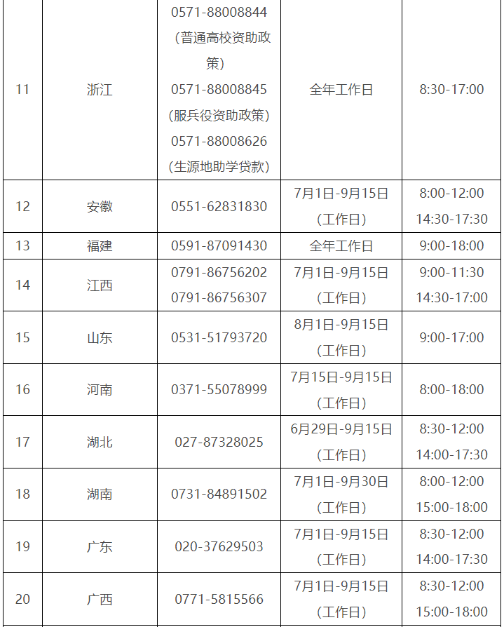 各省(自治區、直轄市)和中央部門所屬高校同步開通了熱線電話,電話號碼與開通時間可查看匯總表。