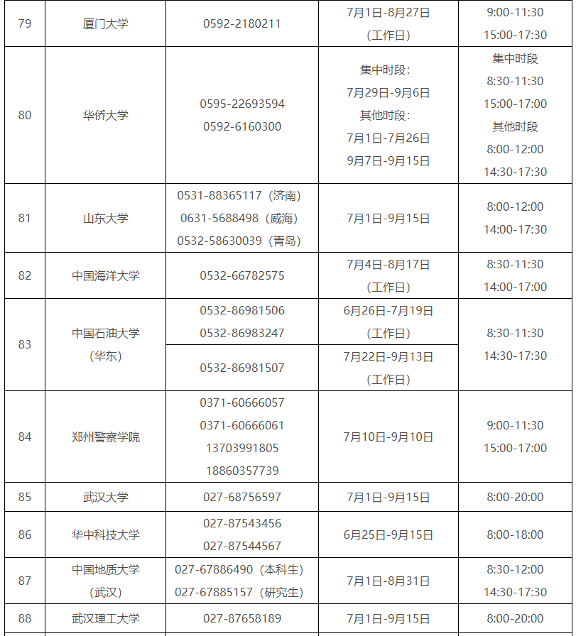 受理時間:7月1日-9月15日(工作日)8:00-12:00 15:00-18:00