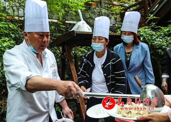 但隨著時代的發(fā)展,人們消費理念的更新,能制作傳統(tǒng)白河“三點水”宴席的人越來越少,偌大一個縣,找不出幾個能夠獨當(dāng)一面制作傳統(tǒng)宴席白河“三點水”的廚師。所以他毅然決定辭去高薪的主廚工作,奔走于鄉(xiāng)村,上門做家政服務(wù),在實地操作技藝中傳幫帶一批會制作白河“三點水”宴席的鄉(xiāng)廚。