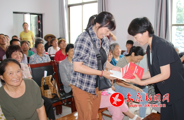 消息一經傳出,旬陽市城關鎮晏坪村的村民滿懷期待。7月19日當天天公不作美,陰雨連綿,但絲毫不影響旬陽市委黨校、市司法局、市婦聯、市殘聯聯合組織的知識宣講活動。“堅決不能掃了群眾的興致”!于是,活動照舊舉行,場地從院子里搬到了會議室里。