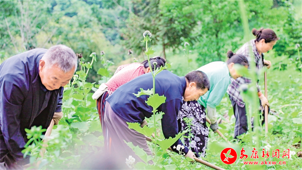 曾家鎮金坪村村民正在云木香種植基地里除草
