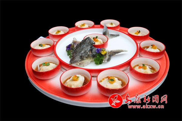 “陜南淡水魚餐飲暨‘贛義鑫杯’烹飪技能大賽”是張顯峰走出去學習交流檢驗自己菜品研究成果的平臺。在準備本次比賽菜品時,他選用了紫陽縣最好的食材“富硒鱘魚”、花鰱魚,土黑豬五花肉及羊肚菌等蔬菜,精心制作了兩道菜品,第一道菜品是紫陽茶香宴中的主菜——茶香鱘龍。這道菜擺盤高雅,肉質細膩,口味鮮美,茶香與淡水魚的完美結合,讓人仿佛置身于清新的茶山之間,品味著大自然的饋贈。