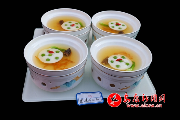 第二道菜品則是傳統與創新并蓄的蓮蓬養生湯。這道菜品主菜形似蓮蓬,不僅外觀精致高雅,而且湯鮮味美,營養豐富,每一口都蘊含著廚師對食材的精心挑選和對烹飪技藝的極致追求。張顯峰最終憑借其精湛的廚藝和創新的菜品脫穎而出,榮獲一等獎,并被授予“陜南烹飪名師”的榮譽稱號。這不僅是對他個人技藝的肯定,更是對紫府壹號陜南文化主題餐廳及整個紫陽美食文化的極高贊譽。更是對紫陽美食文化的一次有力推廣。