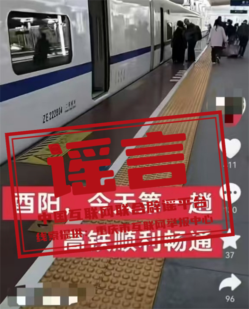 真相:近日,某網(wǎng)民在互聯(lián)網(wǎng)平臺發(fā)布信息稱“酉陽,今天第一趟高鐵順利暢通”,引發(fā)關(guān)注。經(jīng)核實,網(wǎng)傳信息系謠言,酉陽縣暫未建成高鐵站。根據(jù)建設(shè)計劃,黔吉高鐵重慶段將于年內(nèi)開工建設(shè),線路貫穿黔江區(qū)、酉陽縣、秀山縣三地,線路全長約224.2km,全線設(shè)置車站3座,整個建設(shè)工期大概5年左右,預計在2030年之前全面建成通車。目前,警方已對造謠者展開調(diào)查。(來源:“重慶辟謠”微信公眾號)