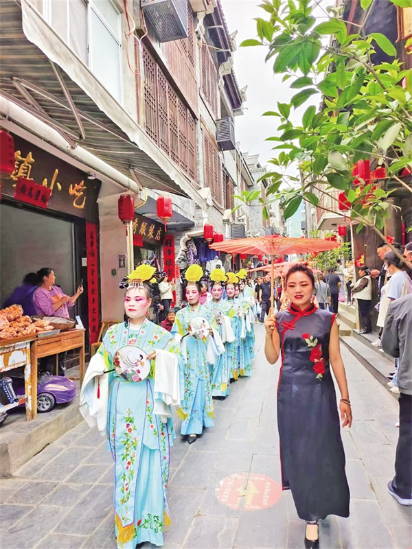 “過去總說‘捧著金飯碗要飯’,現在我們讓老手藝成了新飯碗。”古鎮“裕慶和”店面里,負責人李俊沏上一壺富硒茶,忍不住發出感嘆。這位扎根故鄉創業傳承非遺的“領頭雁”,將祖傳的八大件宴席打造成亮眼名片。他開發的“古鎮兩日游”線路,將美食體驗與民宿客棧、茶社書院有機結合,年接待游客上萬人次。