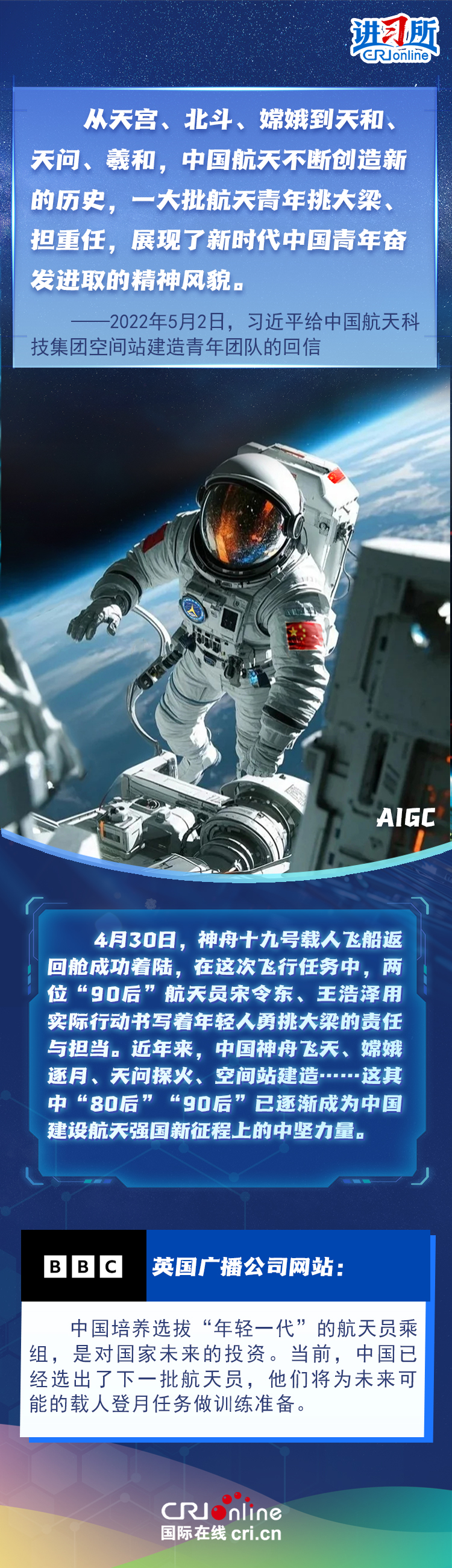 在中國“五四”青年節(jié)前夕,中共中央總書記、國家主席習(xí)近平在上海考察調(diào)研。在一場有關(guān)下一代智能體的主題沙龍現(xiàn)場,習(xí)近平勉勵在場的年輕人,“人工智能是年輕的事業(yè),也是年輕人的事業(yè)”“我們正在全面推進(jìn)強國建設(shè)、民族復(fù)興偉業(yè),正是年輕一代展示才華、大顯身手的好時候。實現(xiàn)中華民族的偉大夢想,寄希望于年輕人。”