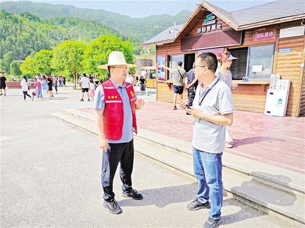 游客需要什么,黨員就做什么!今年“五一”期間,全鎮(zhèn)設(shè)立4個(gè)固定服務(wù)崗、30個(gè)流動(dòng)服務(wù)點(diǎn),配備2支摩托巡邏隊(duì)和200名志愿者,形成“點(diǎn)線面”結(jié)合的服務(wù)網(wǎng)絡(luò)。同時(shí)運(yùn)用“智慧監(jiān)管云平臺(tái)”,整合無人機(jī)巡查、AI人流監(jiān)測(cè)等技術(shù)手段,實(shí)現(xiàn)景區(qū)客流精準(zhǔn)調(diào)控,贏得了廣大游客的爭相稱贊。