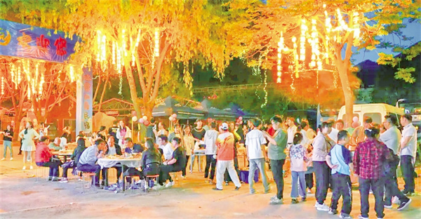 舞臺旁的燒烤美食區,秘制烤肉與本地山珍食材散發著誘人香氣,游客們圍坐一起,吃著燒烤、聽著音樂、吹著涼風,盡情享受假日的愜意。演出間隙的套圈、有獎問答、音樂接龍、民宿推介等互動環節,更是讓游客熱情高漲,現場歡聲笑語不斷。