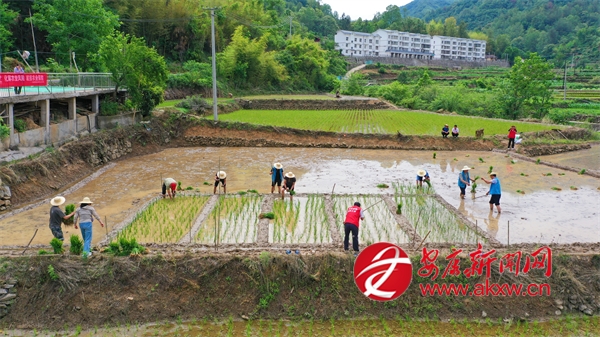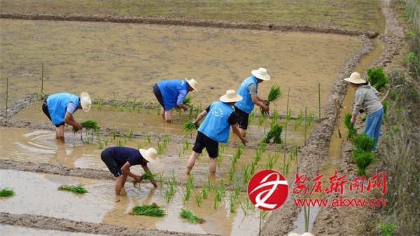 6月5日,走進城關鎮漁灣村麻莊組,一片熱火朝天的農忙景象映入眼簾。農技人員與農戶們并肩作戰,共同進行水稻插秧作業。劃線分區、精準配肥、均勻撒肥、有序插秧……每一項工作都進行得有條不紊,大家分工明確、配合默契,田間地頭處處洋溢著忙碌而歡快的氣息。