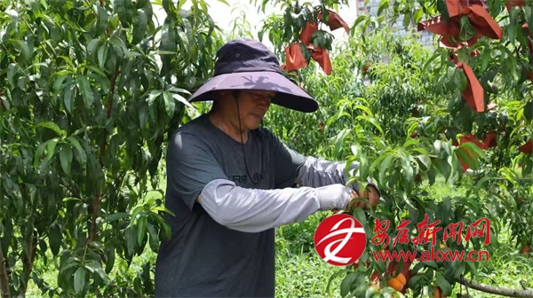 同樣迎來收獲的還有城關鎮的黃桃,在城關鎮龍嶺村的黃桃種植基地,連片的桃樹郁郁蔥蔥,金燦燦的黃桃壓彎了枝條,空氣中彌漫著誘人的桃香?;刎撠熑藙⒑暾χ烧?,臉上洋溢著燦爛的笑容,他一邊采摘一邊介紹道:“我們這個桃園有金鳳黃桃、黃金黃桃、秋彤桃和冬桃四個品種,一共有9畝多,從6月中旬到10月左右,陸續都有成熟的桃子。”