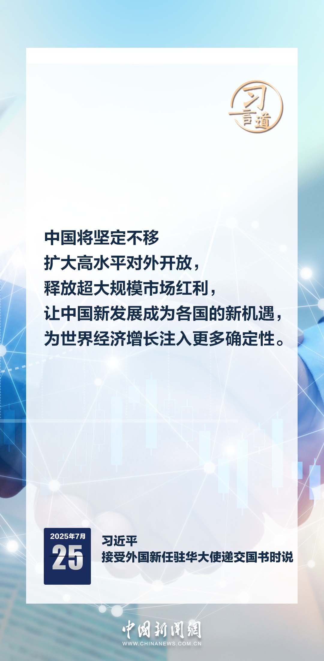 7月25日,國家主席習近平在北京人民大會堂接受16位駐華大使遞交國書。儀式結束后,習近平在北京廳對使節們發表講話。習近平指出——