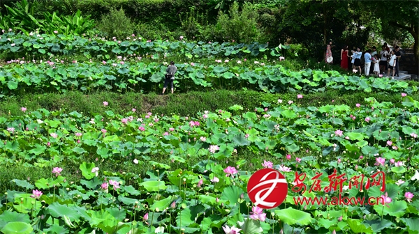 連日來(lái),平利縣廣佛鎮(zhèn)余家灣百畝荷塘花開(kāi)爭(zhēng)艷,引得游人或駐足細(xì)品荷韻,或輕倚棧道拍攝留影。王韜 攝?