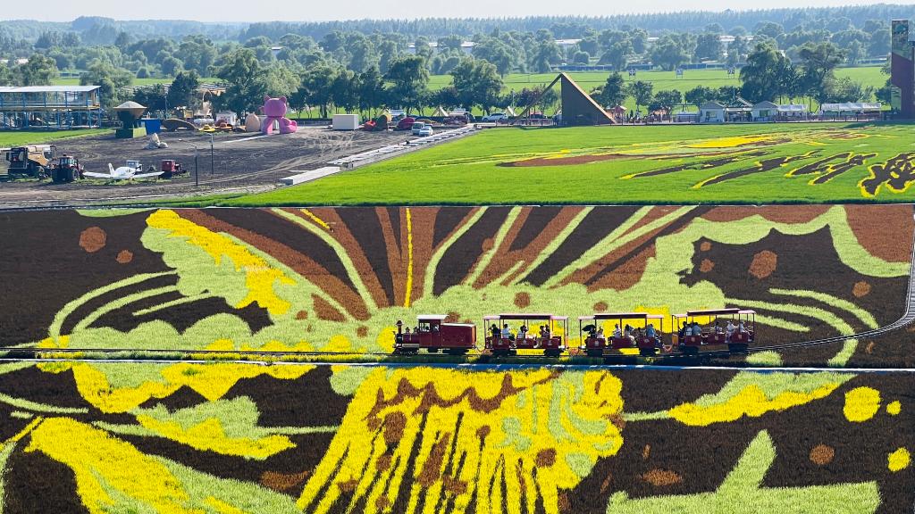 在北大荒集團(tuán)閆家崗農(nóng)場(chǎng)的“藝術(shù)稻田”里,6幅稻田畫(huà)在165畝稻田中徐徐展開(kāi)——冰雪畫(huà)卷盡顯百年冰城魅力,四季生態(tài)畫(huà)卷演繹著四季浪漫;萌寵卡皮巴拉,傳遞出平靜與治愈的力量;后羿射日、女?huà)z補(bǔ)天、神筆馬良這些經(jīng)典神話(huà)在稻田中煥發(fā)新生,與多彩的稻浪共同演繹著中華文明的永恒魅力。100多公里外,北大荒集團(tuán)四方山農(nóng)場(chǎng)的玉米田,青紗帳漸染金黃,工作人員張昊正遙控?zé)o人機(jī),巡航監(jiān)測(cè)作物成熟度,科技與傳統(tǒng)在此刻共舞。