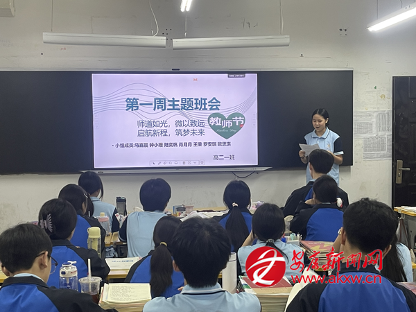 在主題班會上,各班以視頻短片和點滴故事再現了師生之間的感人瞬間,學校還通過LED亮燈、更換宣傳欄等方式,宣傳優秀教師的奮斗足跡和崇高精神。學生會自發制作教師節宣傳視頻,并在廣播站播發致敬教師的文章,號召全體學生要尊重老師、感恩老師、理解老師,自立自強、充實學識、增強本領,長大后回饋社會、報效國家。