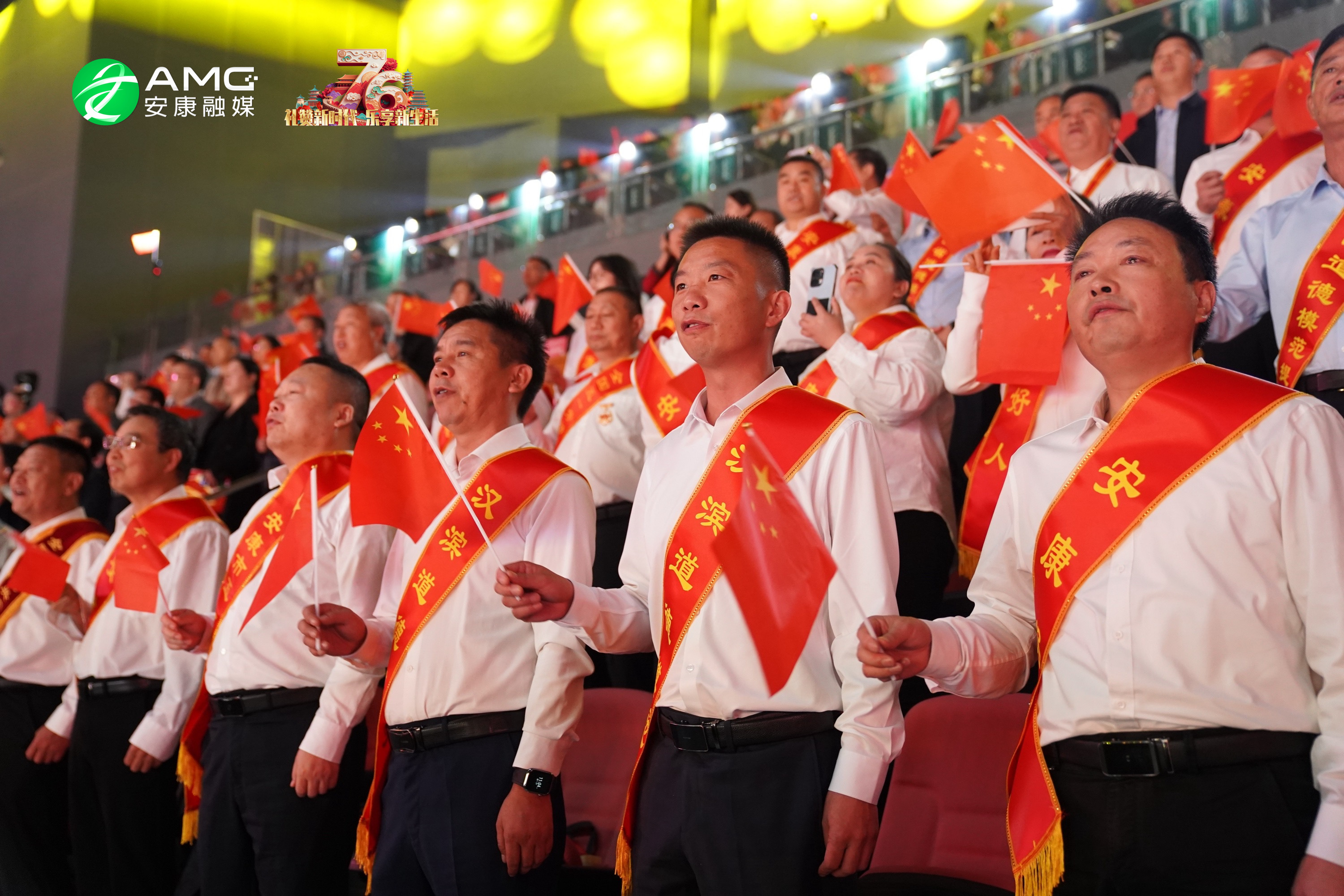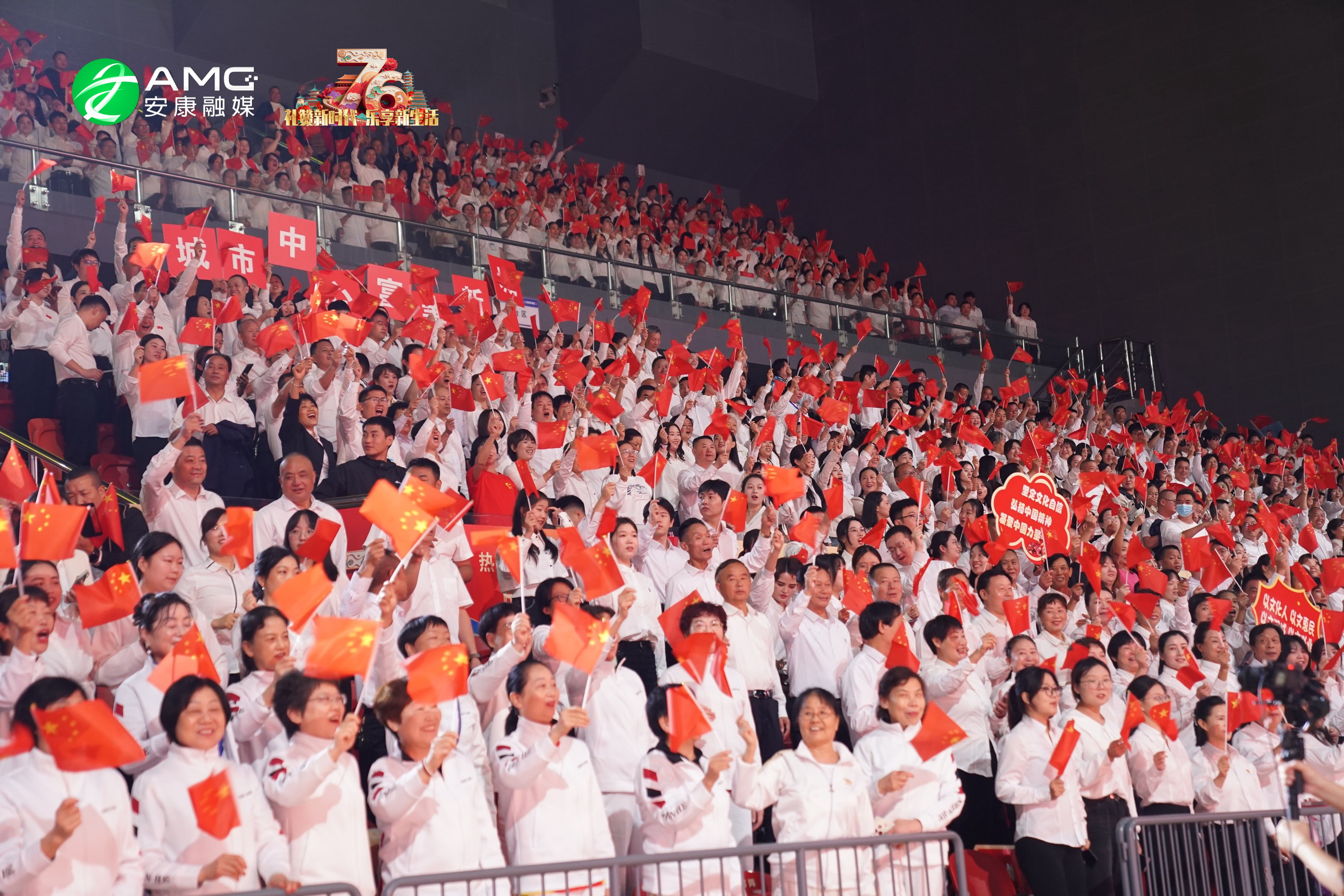 最后,全場人員起立揮舞紅旗,齊聲高唱《歌唱祖國》,用最真摯的歌聲祝福祖國繁榮昌盛,祝愿安康的明天更加美好。歌聲震徹場館,將整場活動推向高潮。