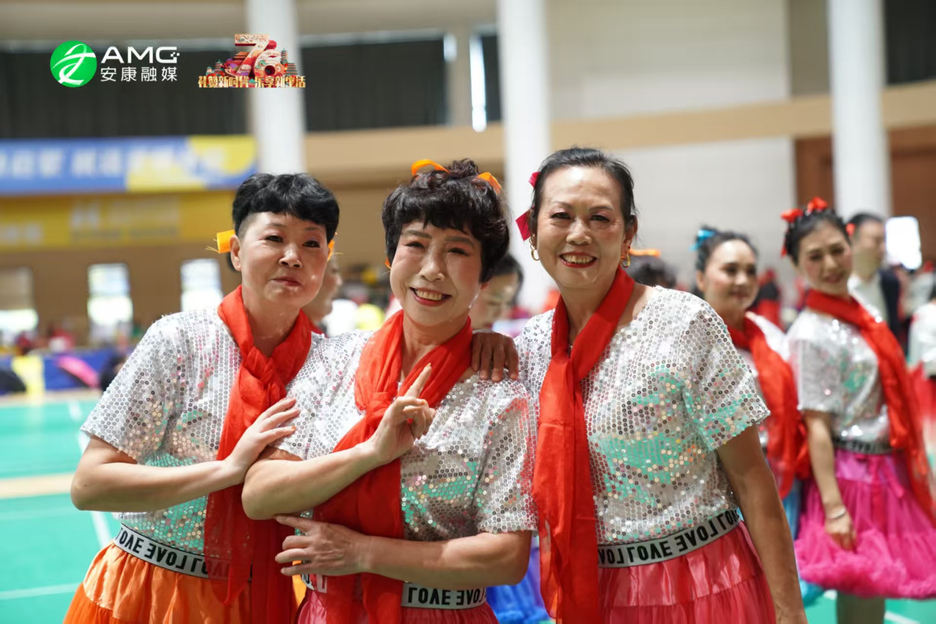 上午8點30分起,體育館內已是熱鬧非凡。演職人員身著盛裝在指定區域就緒。市民們手持紅旗、面帶笑容有序入場,按照既定位置整齊就座。