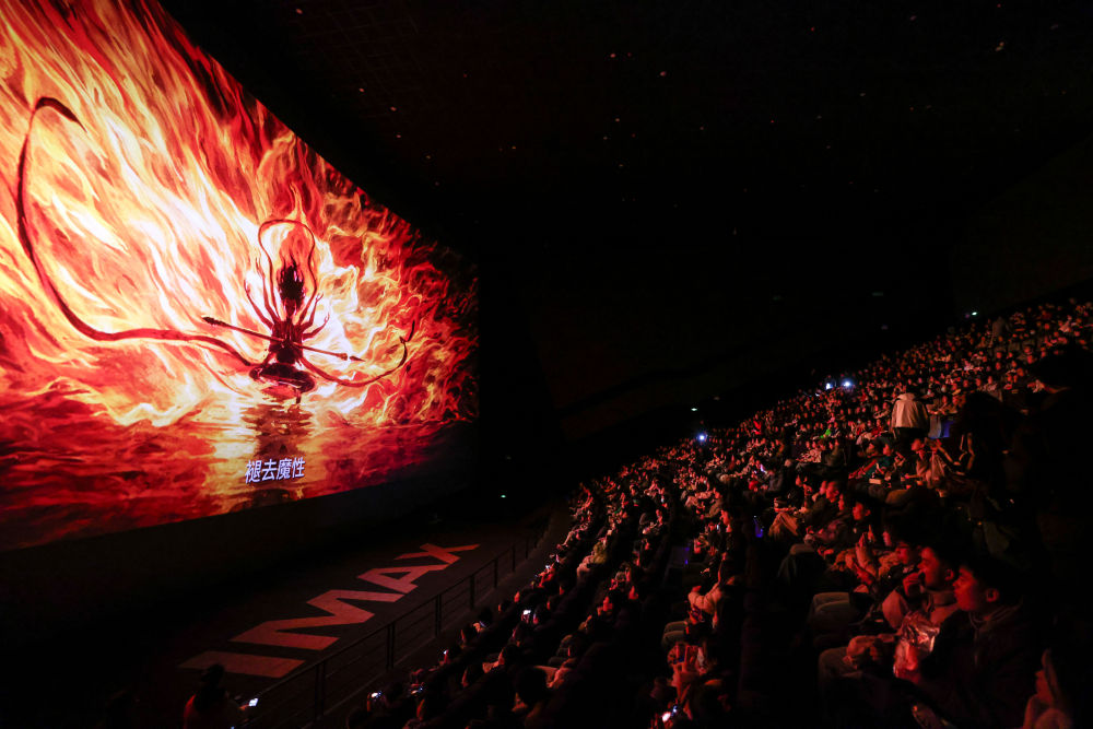 2025年2月25日,觀眾在貴陽越界影城IMAX影廳內觀看電影《哪吒之魔童鬧?!贰赢嬰娪啊赌倪钢[?!纷?月29日上映后票房一路高歌猛進,僅用8天便登頂中國影史票房榜,隨后成為全球單一市場票房冠軍、全球動畫電影票房冠軍。2025年以來,國家電影局等相繼啟動“跟著電影品美食”“跟著電影去旅游”“中國電影消費年”活動,充分發揮電影對提振消費的積極作用;各地文旅部門等通過發布觀影消費券、舉辦主題活動等形式推動影旅融合,發展票根經濟。