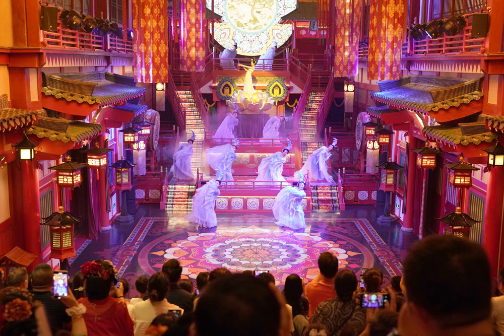 2024年5月19日,游客在西安長安十二時辰景區觀看表演《霓裳羽衣舞》?!伴L安十二時辰”主題街區將唐朝文化與現代旅游相結合,讓游客仿佛置身于千年前的長安城。近年來,西安積極推進產業升級和文旅融合,以中華優秀傳統文化創新創造活力助推經濟社會高質量發展,如大唐不夜城一樣火爆“出圈”的文旅項目層出不窮。