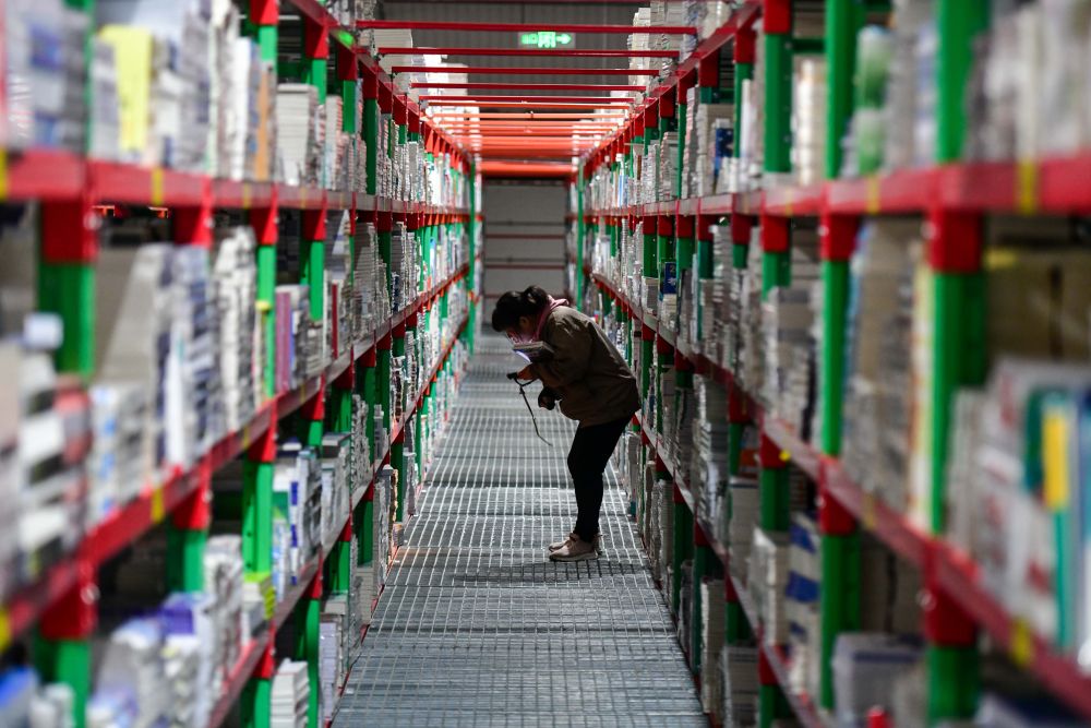 2025年2月19日,工作人員在泰安新聞出版小鎮圖書倉庫內整理書籍。近年來,山東省泰安市立足出版印刷產業優勢,打造泰山新聞出版小鎮,通過拉長壯大產業鏈,推動產業集聚發展,構建龍頭引領、鏈條延伸、集群共進的出版印刷產業“雁陣”。目前,小鎮已吸引60余家企業入駐,涵蓋編輯出版、印刷發行、倉儲物流、版權交易、研學旅游等產業鏈各環節。
