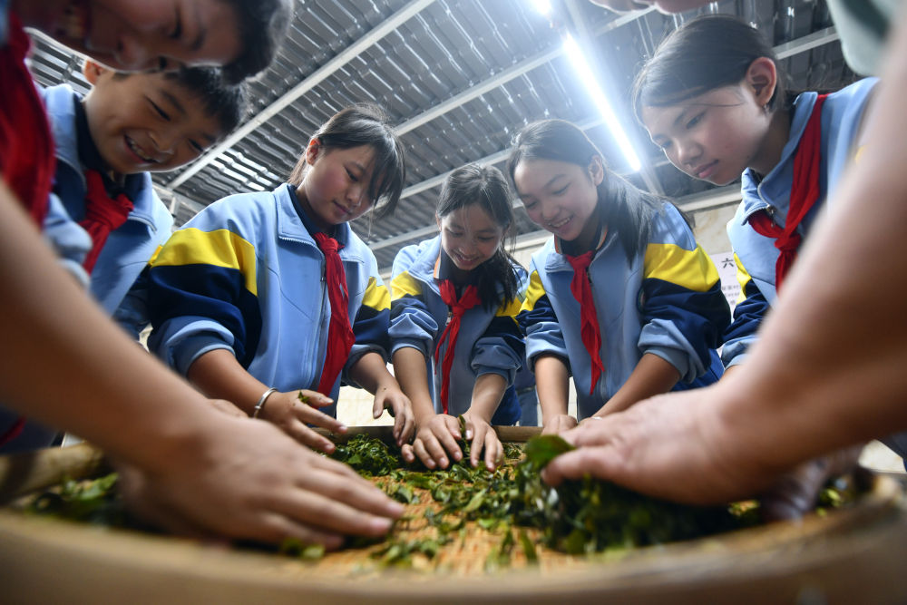 2024年12月3日,學生們在廣西梧州市蒼梧縣六堡鎮塘平小學學習制作六堡茶。廣西六堡茶已有1500多年的歷史,其制作工藝被列入第四批國家級非物質文化遺產代表性項目名錄。近年來,廣西圍繞打造千億元茶產業發展目標,深入實施綠色高效茶園建設、品牌提升和營銷體系建設、產業融合和茶文化提升等多項工程,形成了以六堡茶為引擎,早春茶等特色優勢茶協同發展的產業格局,茶產業煥發勃勃生機。六堡茶正沿21世紀海上絲綢之路運達八方,香飄海內外。2024年,廣西六堡茶產量達到4.3萬噸,綜合產值超300億元。