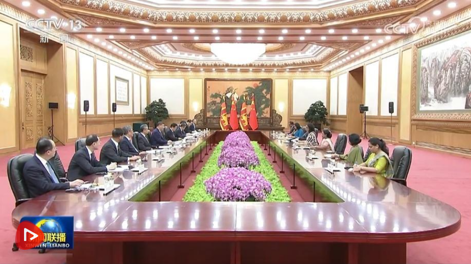 10月14日上午,國(guó)家主席習(xí)近平在北京人民大會(huì)堂會(huì)見來華出席全球婦女峰會(huì)的斯里蘭卡總理阿馬拉蘇里亞。