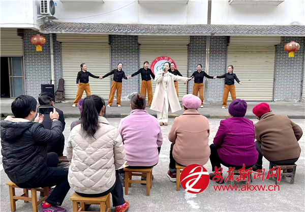 首場(chǎng)活動(dòng)在城關(guān)鎮(zhèn)湯坪社區(qū)拉開帷幕。上午9點(diǎn),演出團(tuán)隊(duì)的小巴剛開進(jìn)社區(qū)院子,志愿者們就迅速布置起臨時(shí)舞臺(tái)。隨著音樂(lè)聲響起,原本安靜的院子漸漸熱鬧起來(lái),居民們?nèi)齼蓛蓢鷶n過(guò)來(lái)。暖陽(yáng)下,志愿者早就擺好整齊的凳子,等候老人們?nèi)胱?/p>