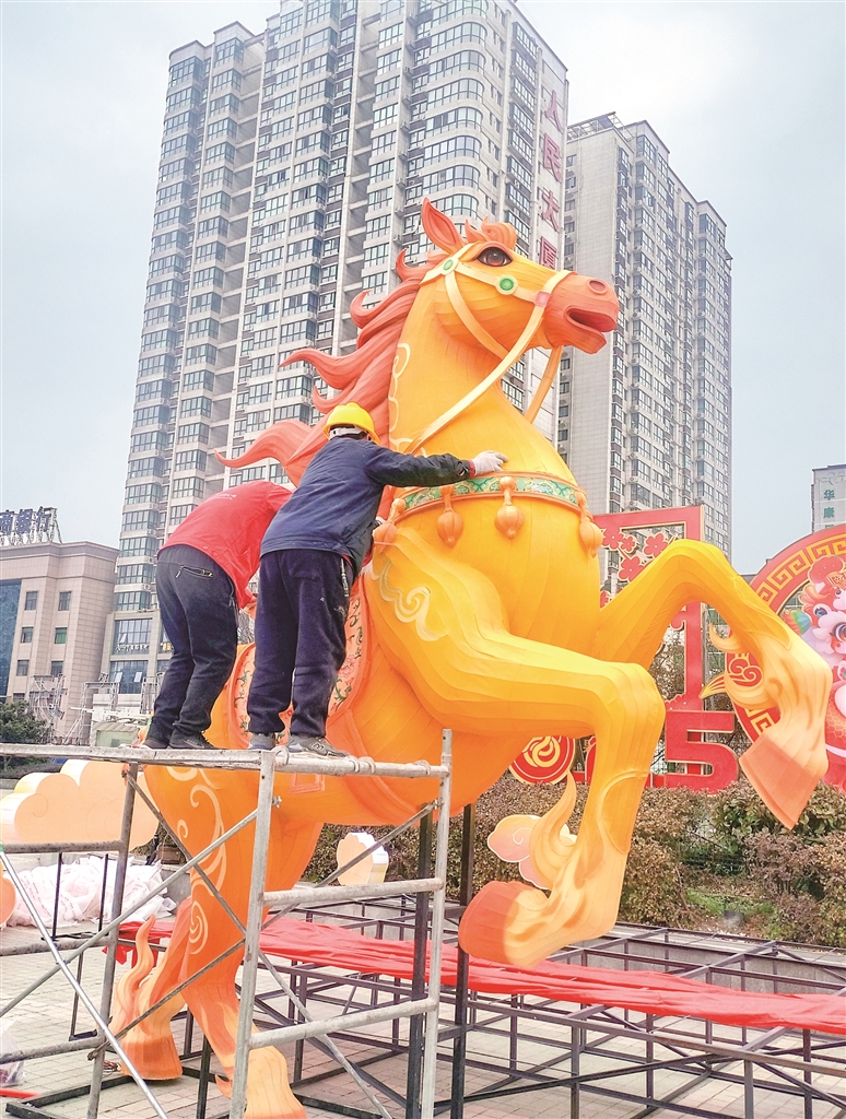 春節臨近,石泉縣依托獨特漢水文化、蠶桑文化、移民文化資源稟賦,通過設置漢江神女、蠶桑娘娘、嫦娥奔月、漢調二黃等造型獨特的燈飾,營造濃濃的新年氛圍。圖為1月17日下午,工人正在安裝燈飾。(譚文昌 攝)