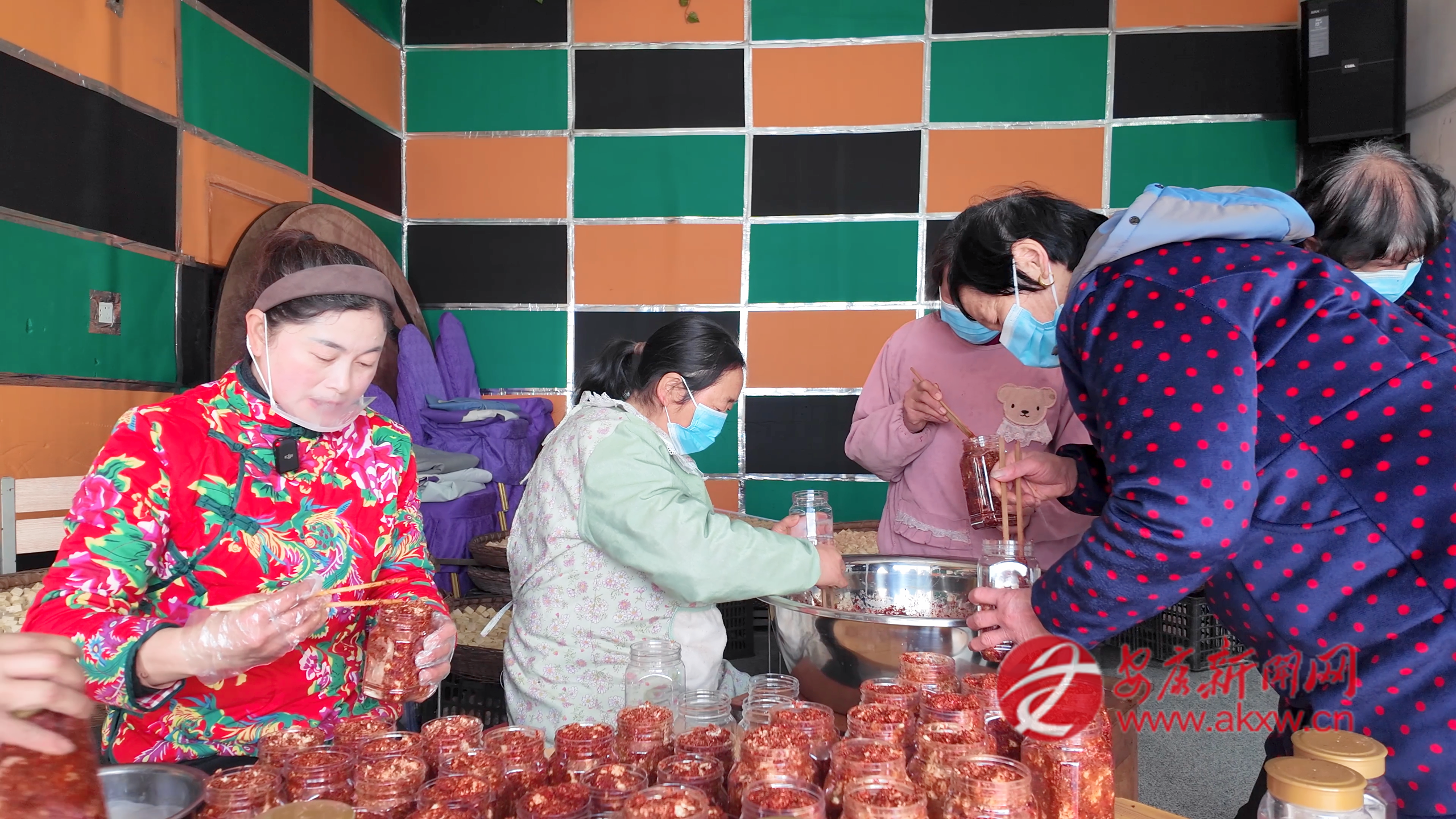 發酵完成后,便進入“拌料”環節。自制的辣椒面、精選花椒與精鹽,在一雙巧手的翻拌下,均勻裹上每一塊披著紅絨的豆腐。隨后,它們被穩妥地裝入器皿中,封存起來,交由時間完成最后的轉化與融合。