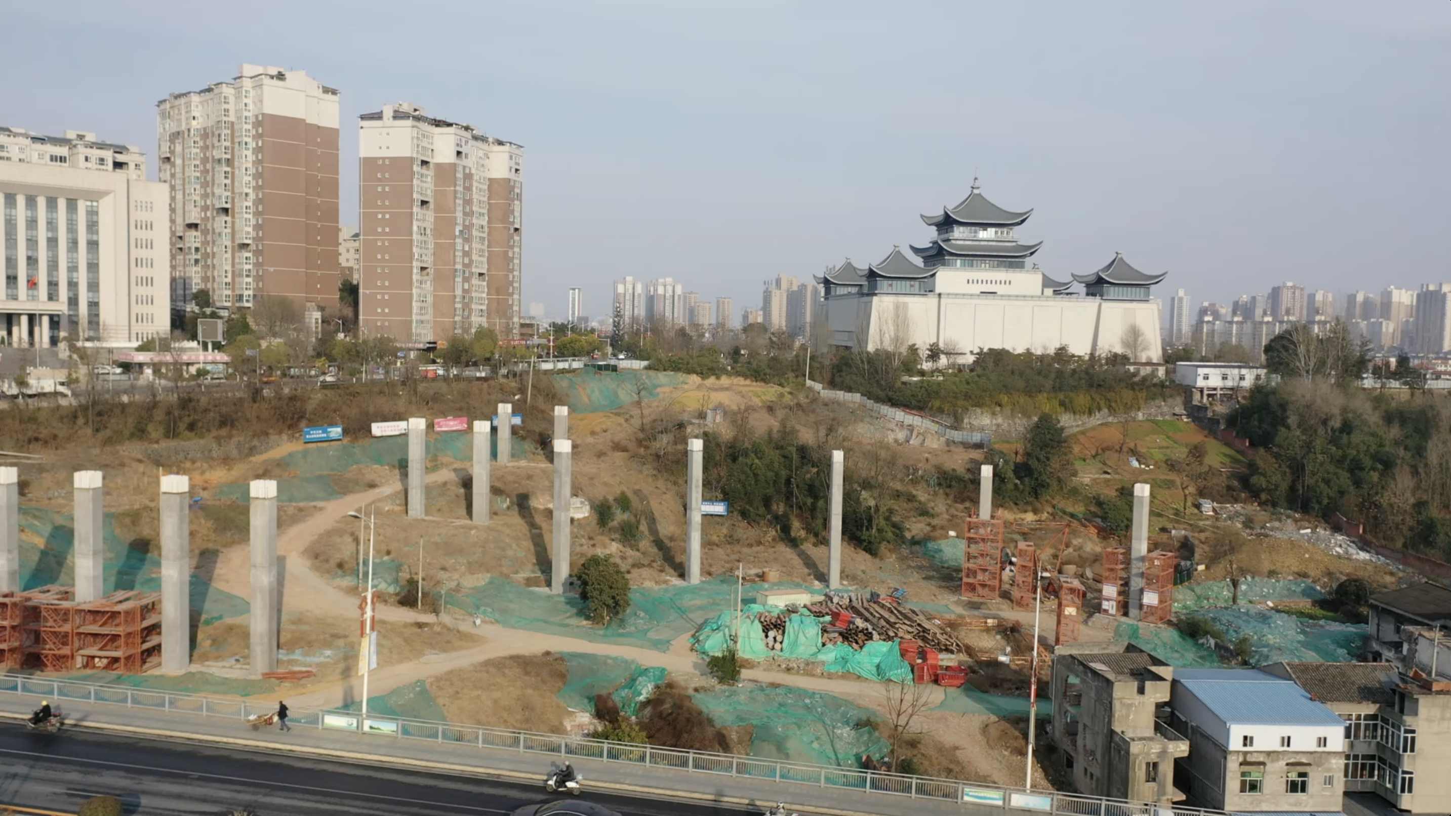 2023年11月30日,主線和F匝道墩柱澆筑完成。