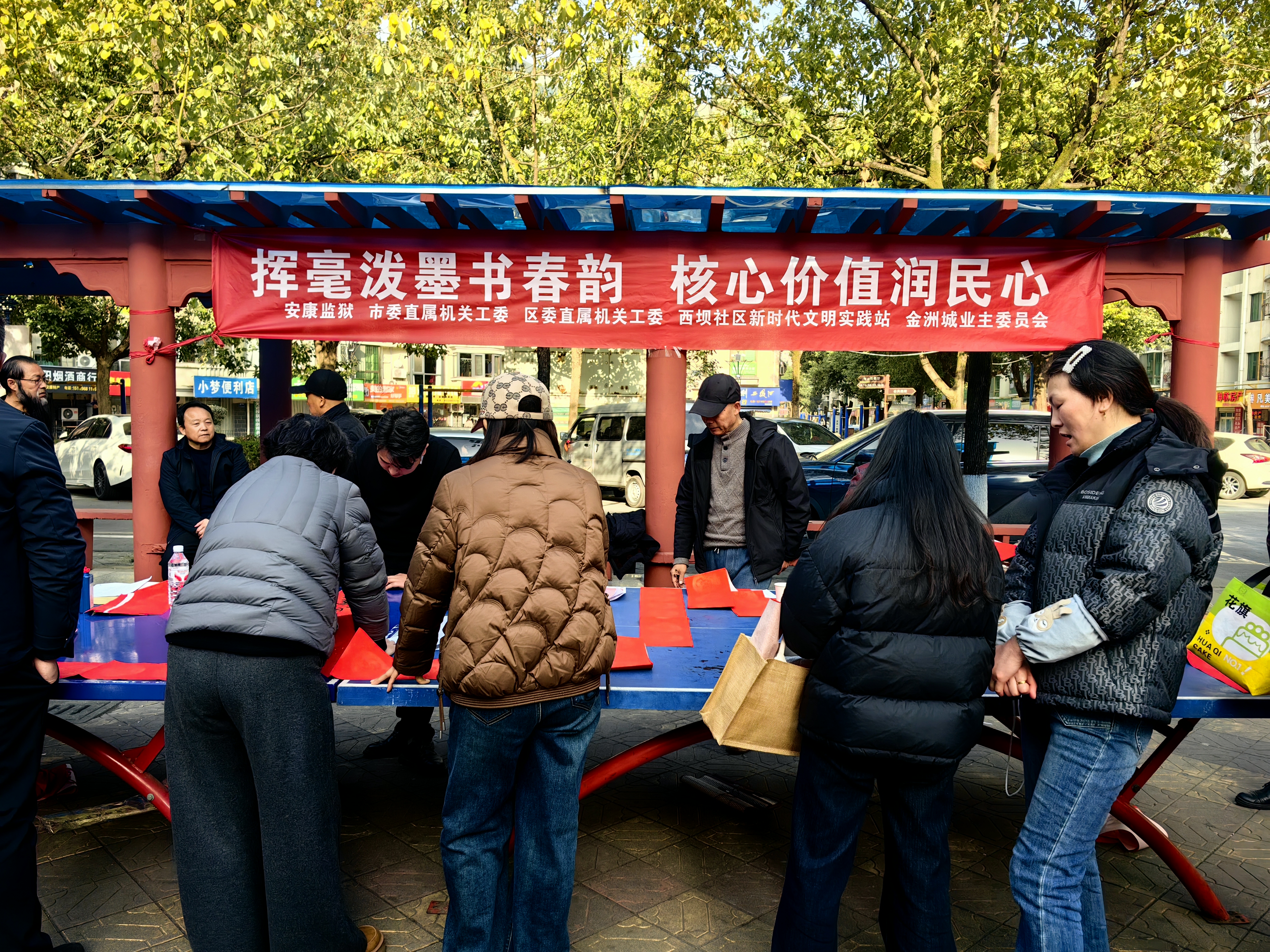 2月2日下午,安康監獄、市委直屬機關工委、區委直屬機關工委、漢濱區西壩社區新時代文明實踐站組織市區書法家在金洲城小區為群眾義寫春聯。 鄭時根 攝