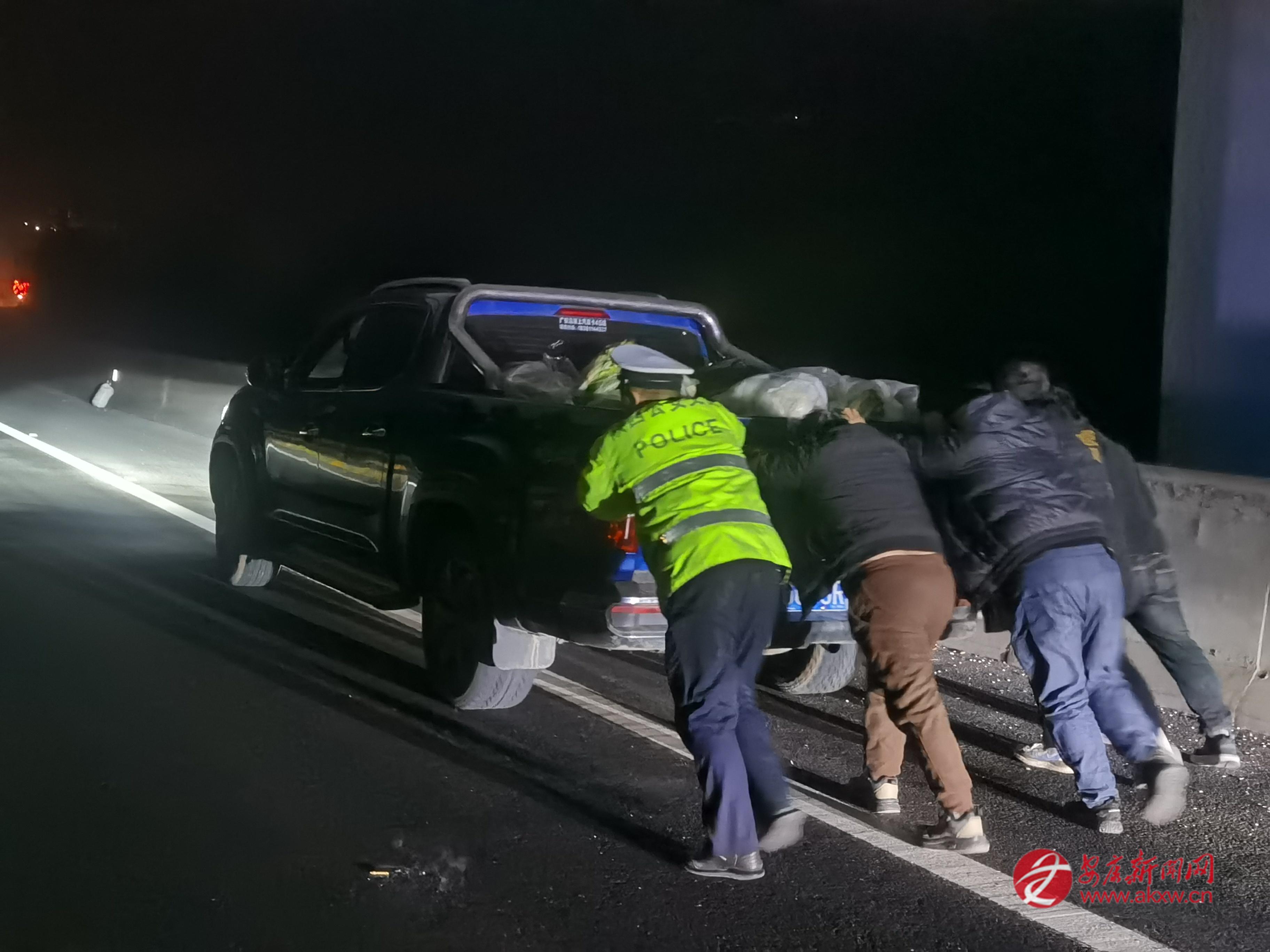 春運路上的安全守護:安十執勤大隊深夜徒手推車排險保暢通